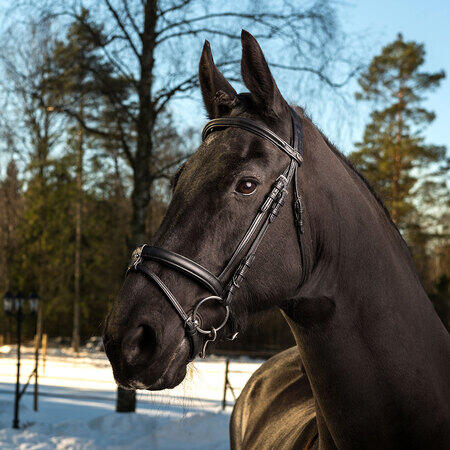 Engelske næseremme er klassiske gammeldags næseremme, der er ret tynde. De kan findes i en lidt bredere model, men bør ikke strammes mere, end at der kan være plads til ca. to fingre mellem næsebåndet og næseryggen. Mange islandske ryttere foretrækker det engelske næsebånd, fordi det er behageligt og ikke lægger for meget pres på hestens næse. Når det kommer til at finde et nyt hovedtøj til pony, har du altså mange muligheder – i hvilket valg, der er det rette, handler om din hests behov.