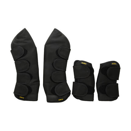 Sættet består af transportgamacher til både for- og bagben, der lukkes med kraftig velcro.