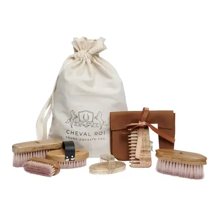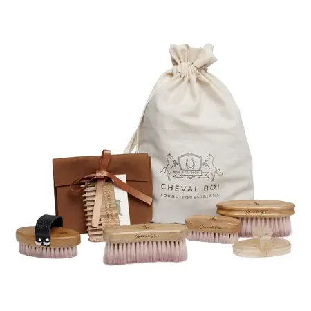 Cheval Roi's sortiment består også at det fineste tilbehør til kæphesten, der tæller alt fra trense/hovedtøj med rigtig bid til kæpheste, grime sæt til kæphest, dækken til kæpheste, hut til kæpheste, striglesæt til kæpheste og rosetter. Alt sammen i de smukke farver antique rose, amethyst lilla, sage green og navy blue. Leder du efter Cheval Roi kæphest tilbehør er du kommet til det rette sted, for her hos Ponypiger har vihele sortimentet.