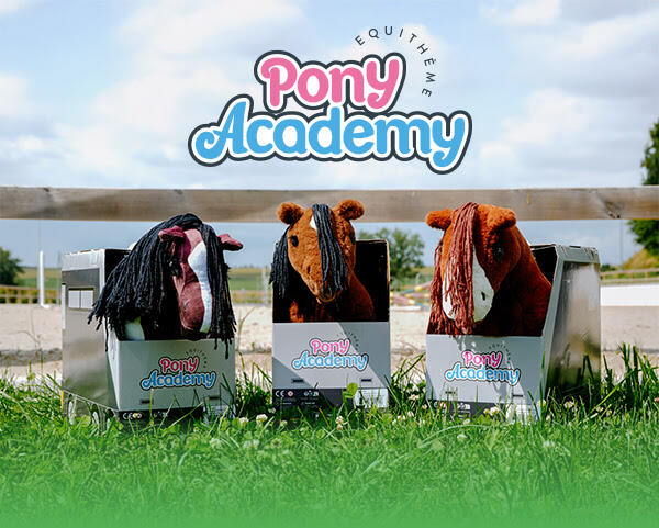 Serien Equitheme Pony Academy er udviklet til at kombinere leg og læring, hvor børn kan øve sig i at strigle, sadle op og passe deres egen hest. Serien består ud over de søde heste og af en lang række udstyr og tilbehør,, så legen kan vokse i takt med barnets fantasi.