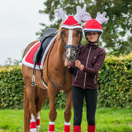 Forkæl dig selv, din pony og dine staldvenner med sjovt og sødt juleudstyr til både pony, hest, rytter og stalden. Vores sortiment indeholder både praktisk rideudstyr med juletema og sjove juleaccessories, der skaber smil i stalden. Perfekt til julestævner, julehygge i stalden eller juleoptog.