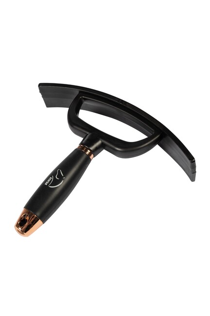 Svedskraberen har en gummikant, der let og skånsomt fjerner overskydende vand og sved fra hestens pels.