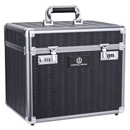 Hold styr på alt dit pleje- og strigleudstyr med Imperial Riding IRHShiny striglekasse i Grey-Black - en elegant og praktisk striglkasse, der kombinerer stil og funktionalitet til rytteren og hestens udstyr.