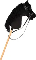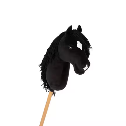 Med et hoved i blødt stof, en fyldig man, samt en kort, solid træpind, opfylder denne kæphest alle krav til moderne ridelegetøj for børn.