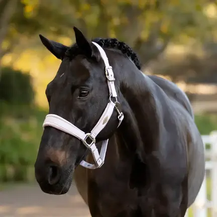 - Holdbar grime i nylonv med fleece på nakkestykke, kindstykker og næsebånd samt Mini LeMieux broderi