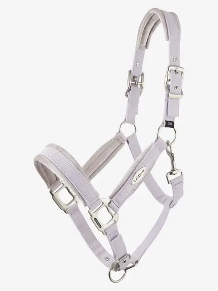 - Holdbar grime i nylonv med fleece på nakkestykke, kindstykker og næsebånd samt Mini LeMieux broderi