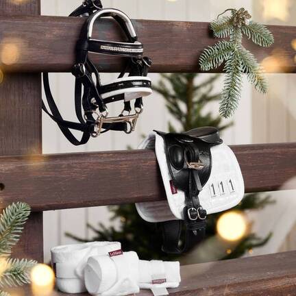 Forbered dig på at piaffe og piruette med det flotte dressur sæt til legetøjsponyerne fra LeMieux. Velegnet til alderen 8+.