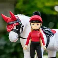 Chloe har smukt, ægte, langt blond hår og naturlige øjenvipper. Hun er iført mini LeMieux-ridetøj i chili rød, ridehjelm og støvler. Alt sammen aftageligt, så du kan klæde hende i dine yndlingsfarver.