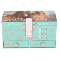 Gem dine smykker og andre små skatte i det smukke smykkeskrin fra Miss Melody i en soft grøn med lyserøde kontraster.