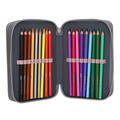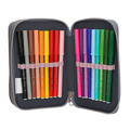 Det er opdelt i tre rum og findeholder alt, hvad man skal bruge til at tegne og skrive med i skolen og derhjemme: