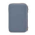 Penalhuset er i støvet blå med flot hestemotiv med lettere forhøjet 3D effekt på forsiden, kobberfarvede lynlåse med et sødt stigebøjle vedhæng.