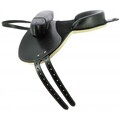 Sadlen er fremstillet i bøffellæder, som giver høj holdbarhed og et eksklusivt look. De nittede gjordstropper, læderhåndtag og ring til halerem gør den både praktisk og solid – perfekt til rideskoler, ponyhold og handicapridning.