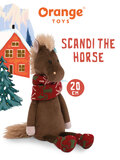Mød Scandi, den hyggeligste bamsehest fra Orange Toys - klædt i et flot rødt og grønt halstørklæde og matchende sokker med skandinavisk mønster.