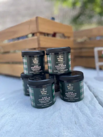 Pretty Ponys S.O.S PONY BALM er en helende salve, skabt til at pleje og lindre irritationer, bid, sår og insektstik hos hest & ponyer.