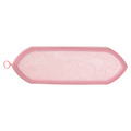 Striglen et behageligt håndtag med hjerteprint og lyserøde børster formet som et hjerte.