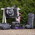 På ydersiden er der lommer hele ven rundt om til ting som en vandflaske eller spray til din pony, samt en lynlåslomme.